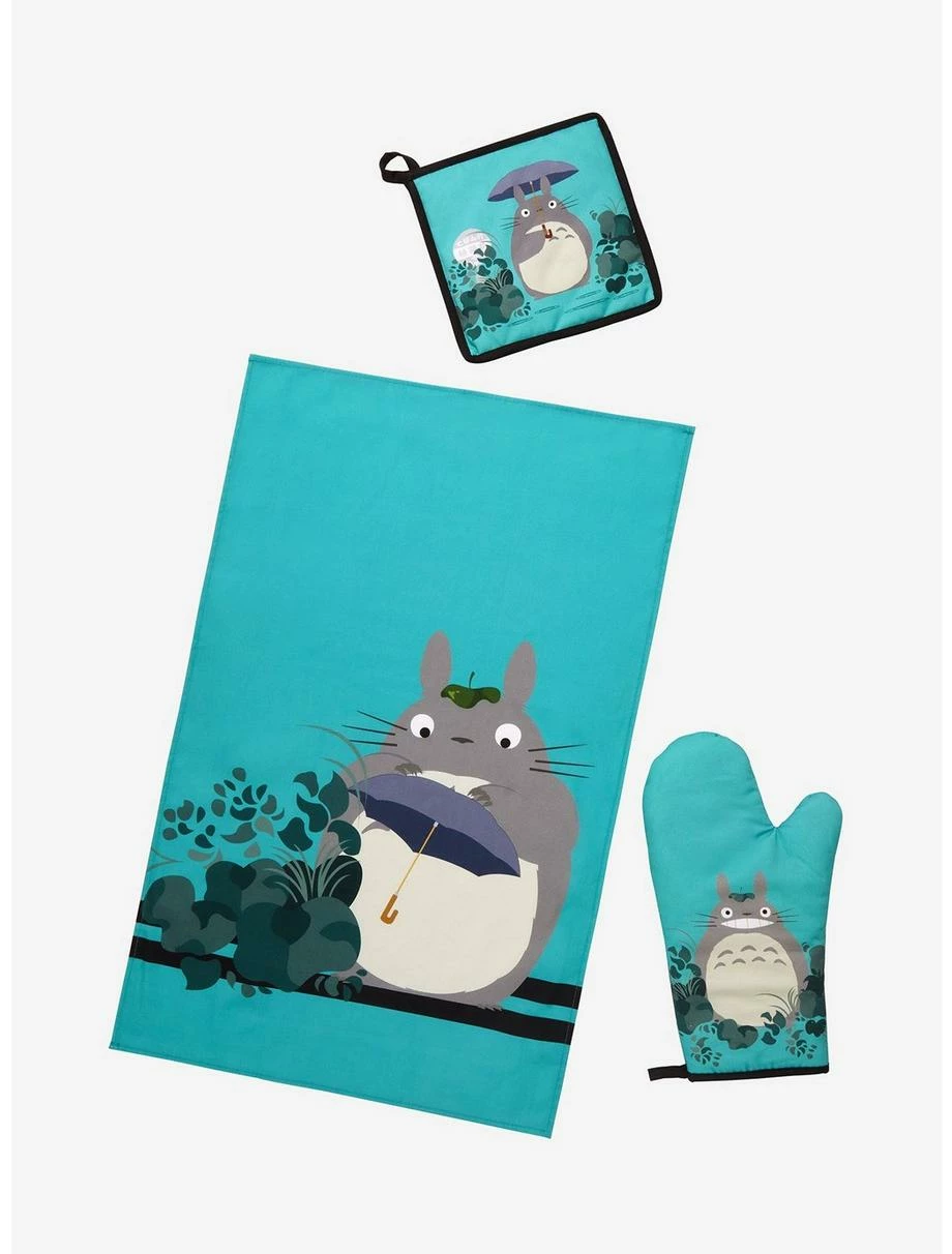 - Oven mitt: approx. 6 1/2″ W x 12″ H; pot holder: 8″ W x 8″ H; towel: approx 19″ W x 27″ H
