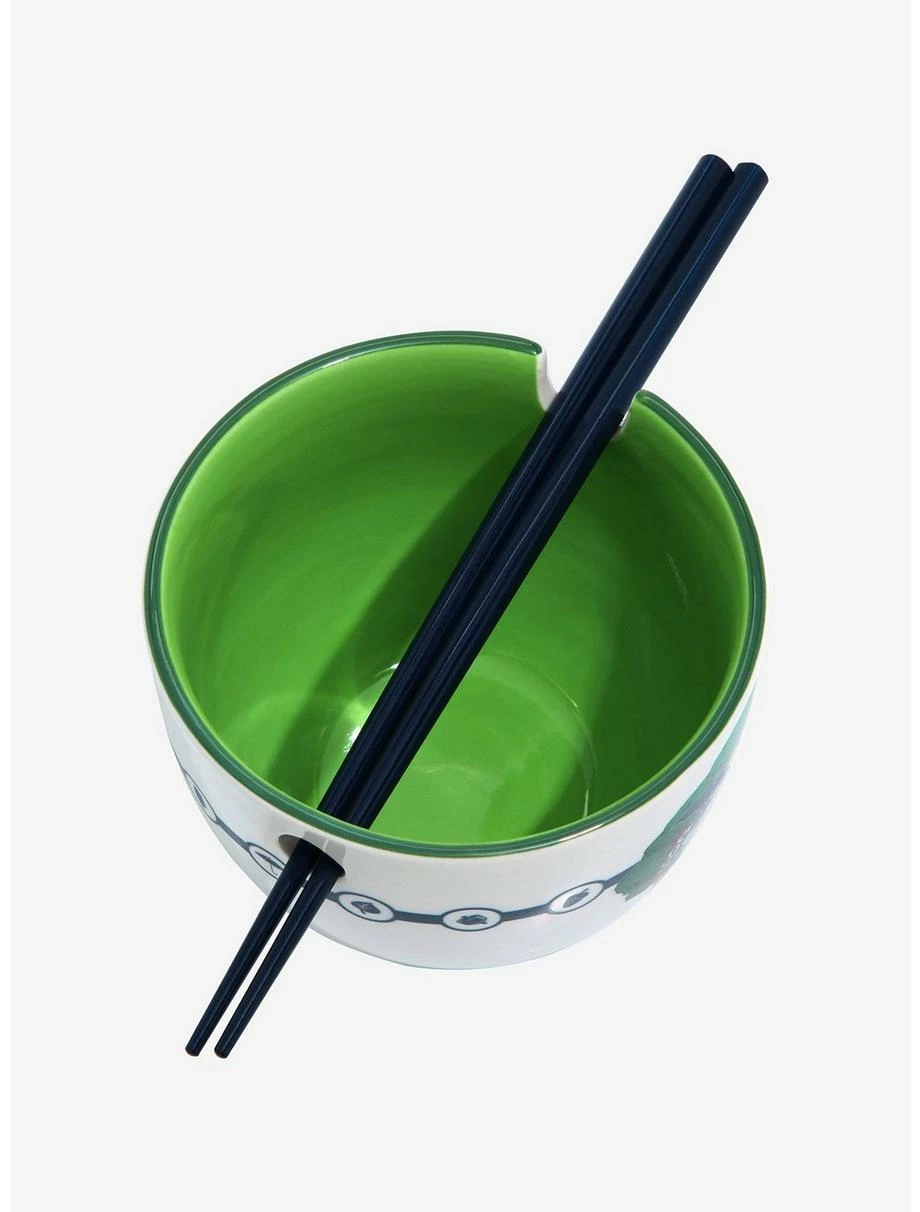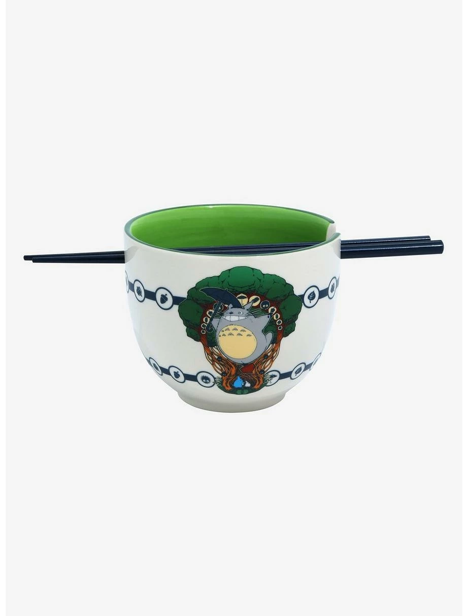 Fuel up for your trip through the forest with a little help from the furry forest spirit! Give your ramen a touch of Studio Ghibli charm with this My Neighbor Totoro-inspired ramen bowl. Totoro appears balancing before the iconic tree amongst various icons from the beloved film as the graphic on both sides. Also features a hole and notch to put the included chopsticks!